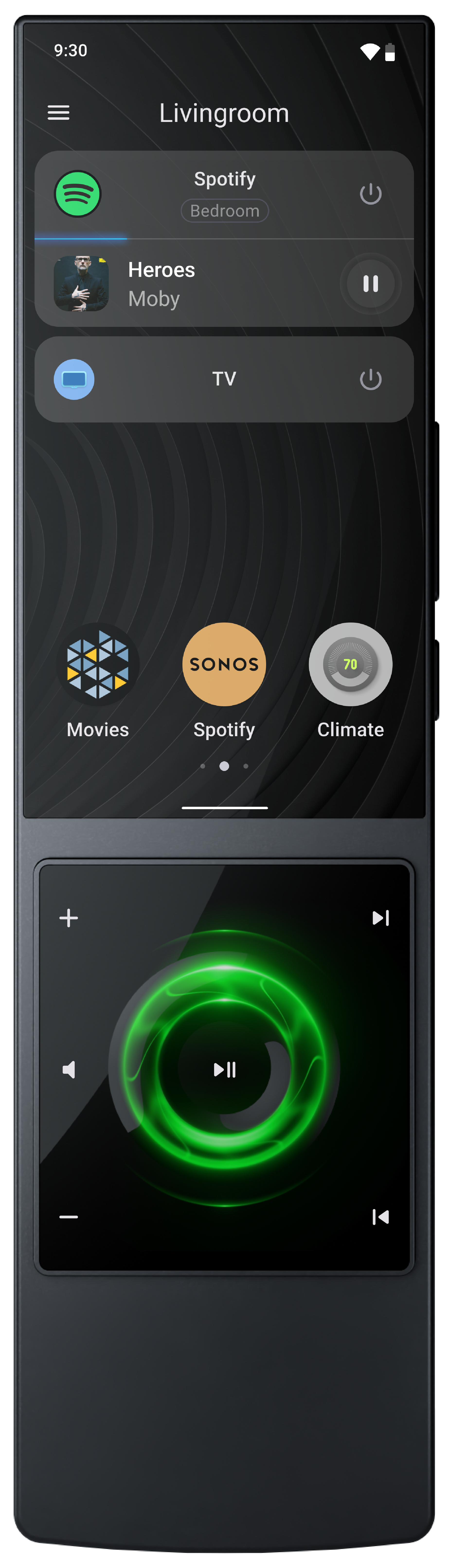 Dynamic Keypad Layout: Adaptive Control Ava’s Cinema Remote features a high-resolution secondary display with a mechanical click , providing precise control and tactile feedback. The dynamic keypad layout adapts automatically to each of your devices, ensuring you have the right controls at your fingertips.